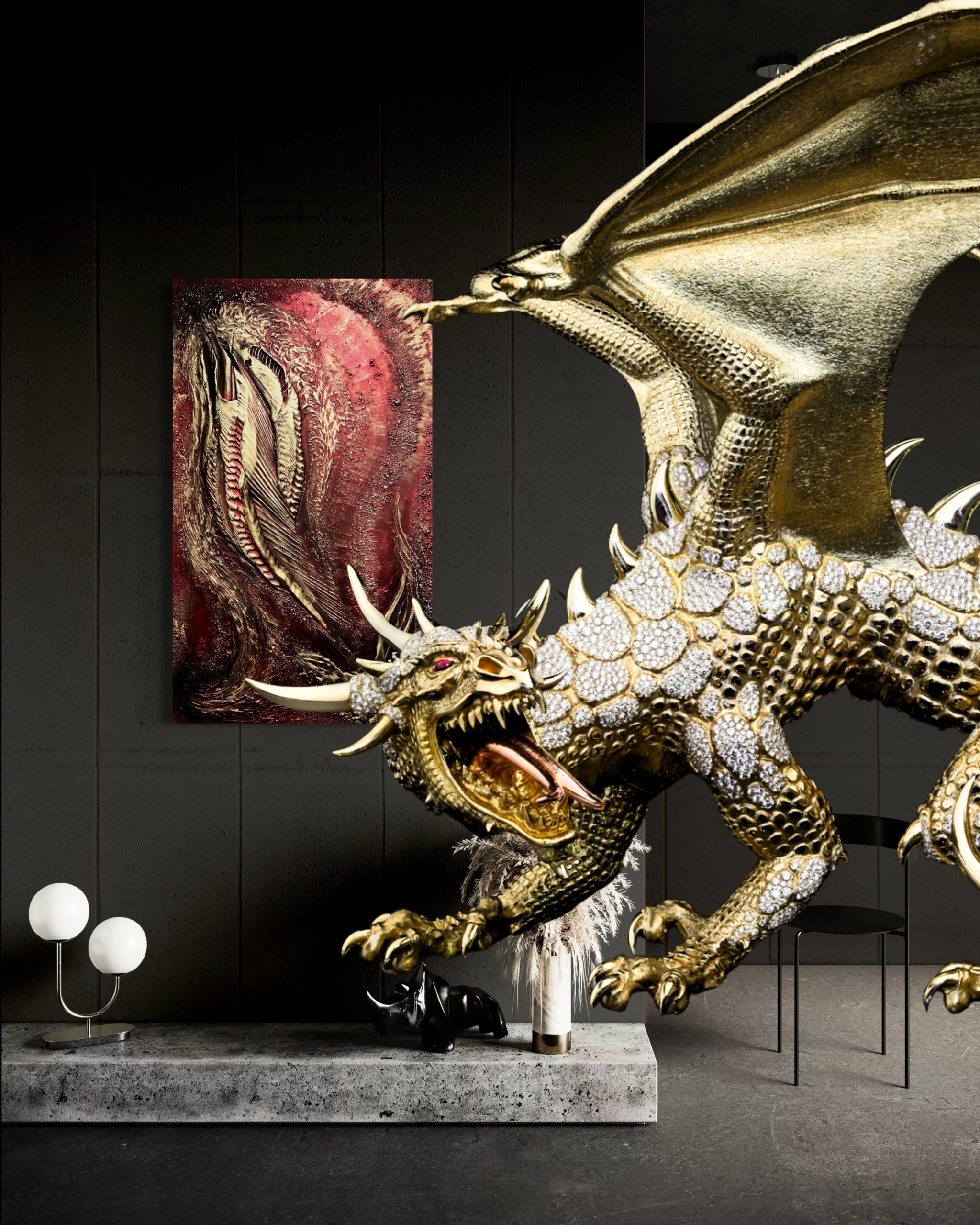 In Zusammenarbeit mit der Schmuckmanufaktur Giberg entstand eine Serie von 12 monumentalen Werken, inspiriert vom Mythos des Drachen – einem Symbol für Mut, Kraft, Glück und Fortschritt.