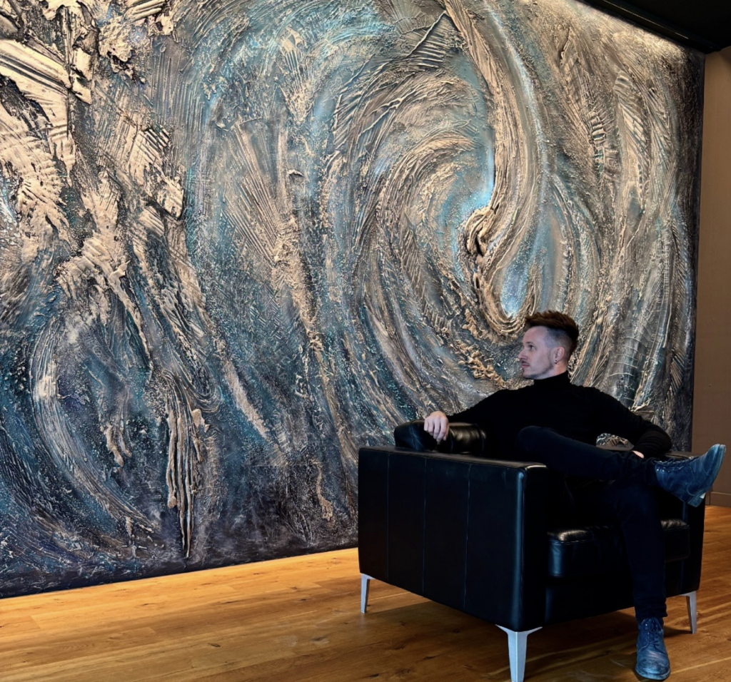 Statt ein fertiges Bild an die Wand zu hängen, wird die Kunst selbst Teil des Raumes. Wände werden zur Oberfläche für Struktur, Farbe und Bewegung.